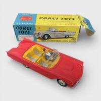 Corgi No. 214 Ford Thunderbird, mint green with cream roof, flat spun hubs, generally excellent in good plus box. Contents unchecked for completeness or correctness and viewing recommended.