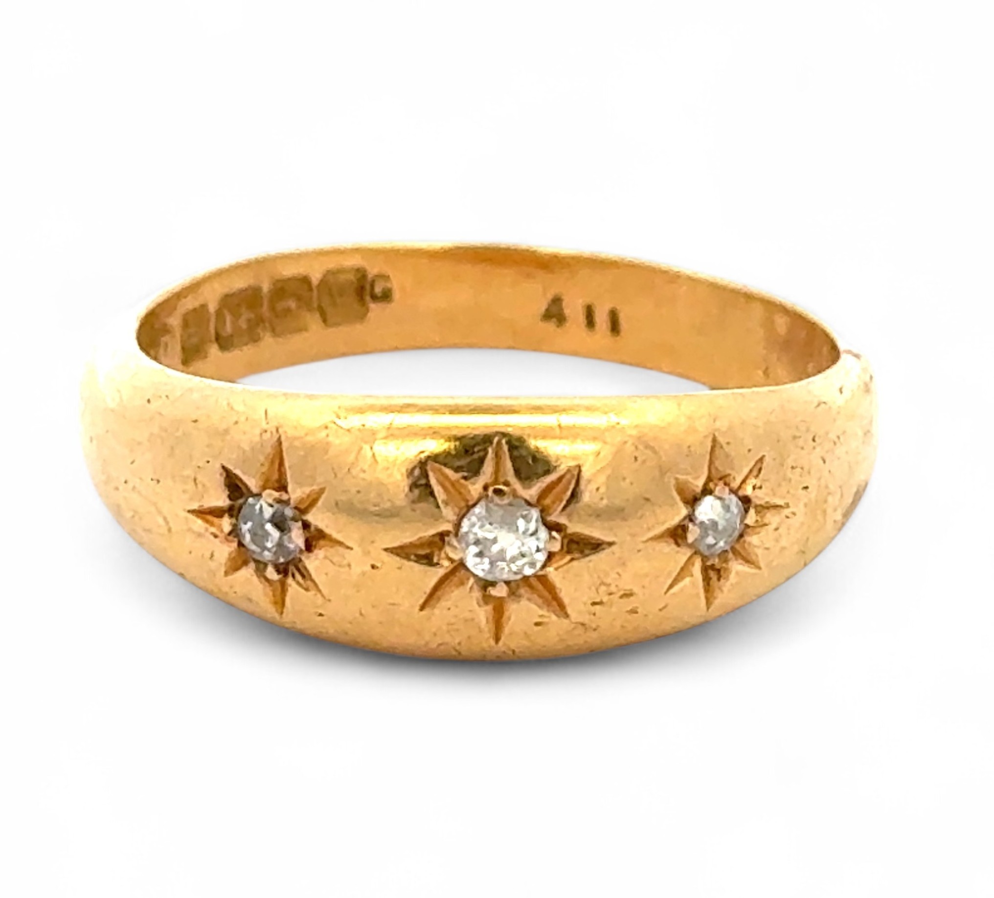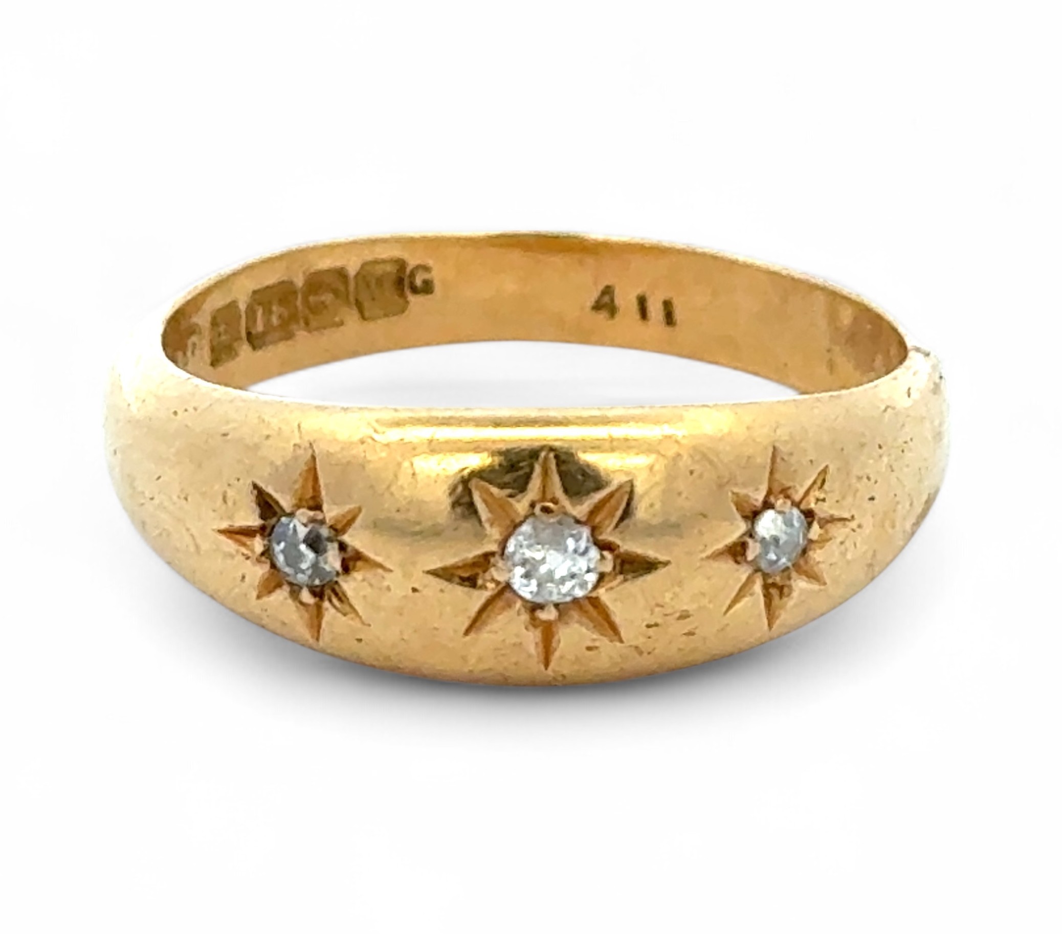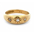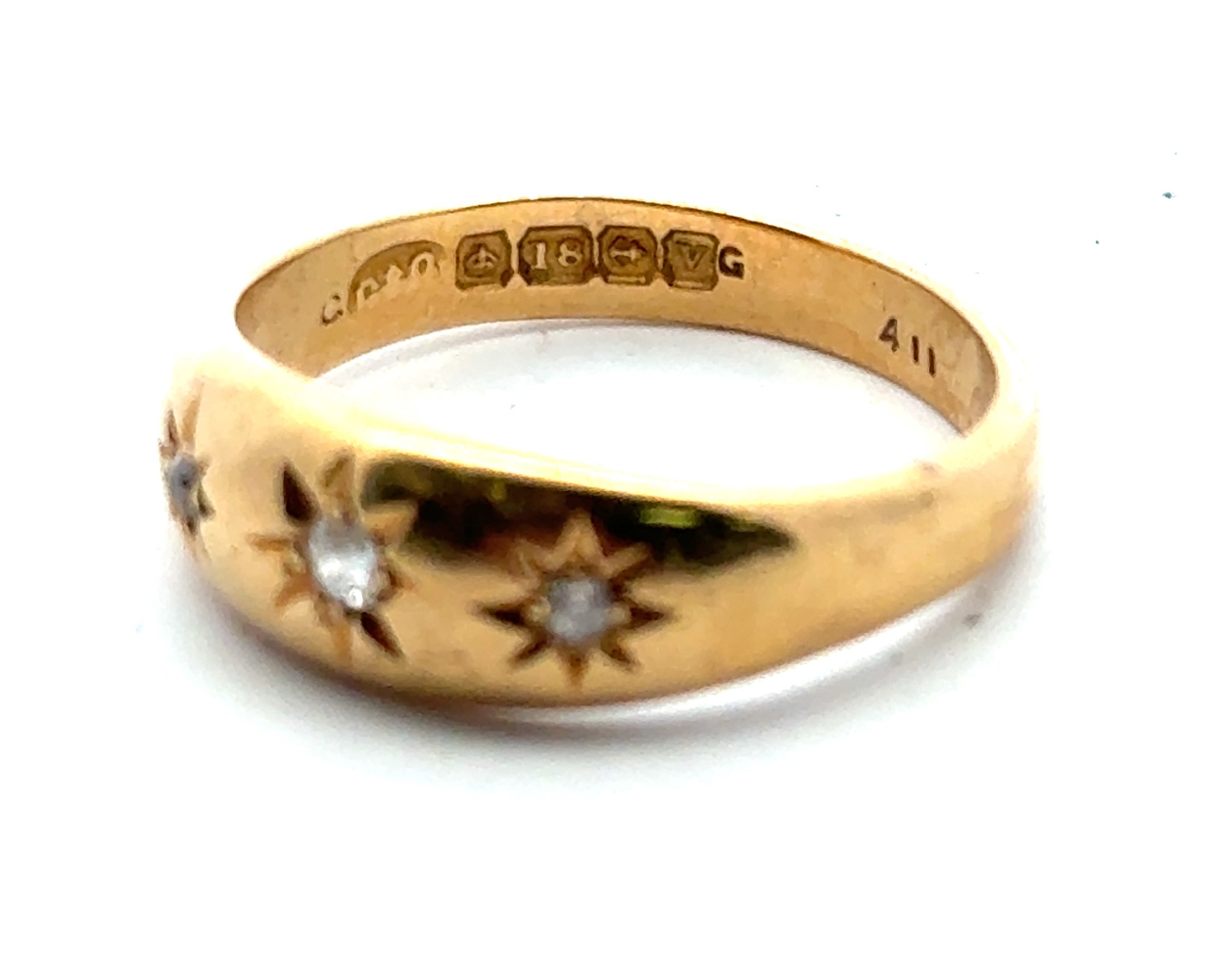 Am 18ct gold and diamond gypsy ring, size P. Birmingham hall...