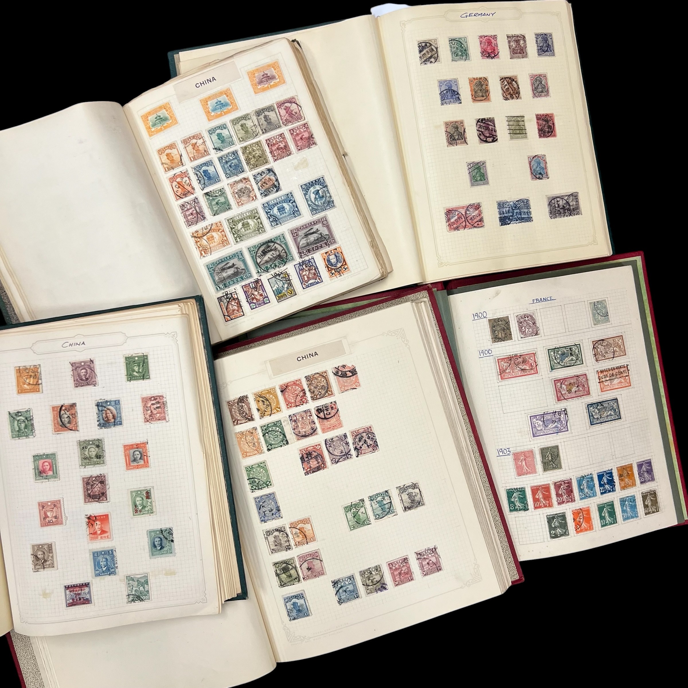 World used stamp collection in five albums from c1900-1950’s with useful incl Germany, France and Cols, Scandinavia, South America, China etc. One box.