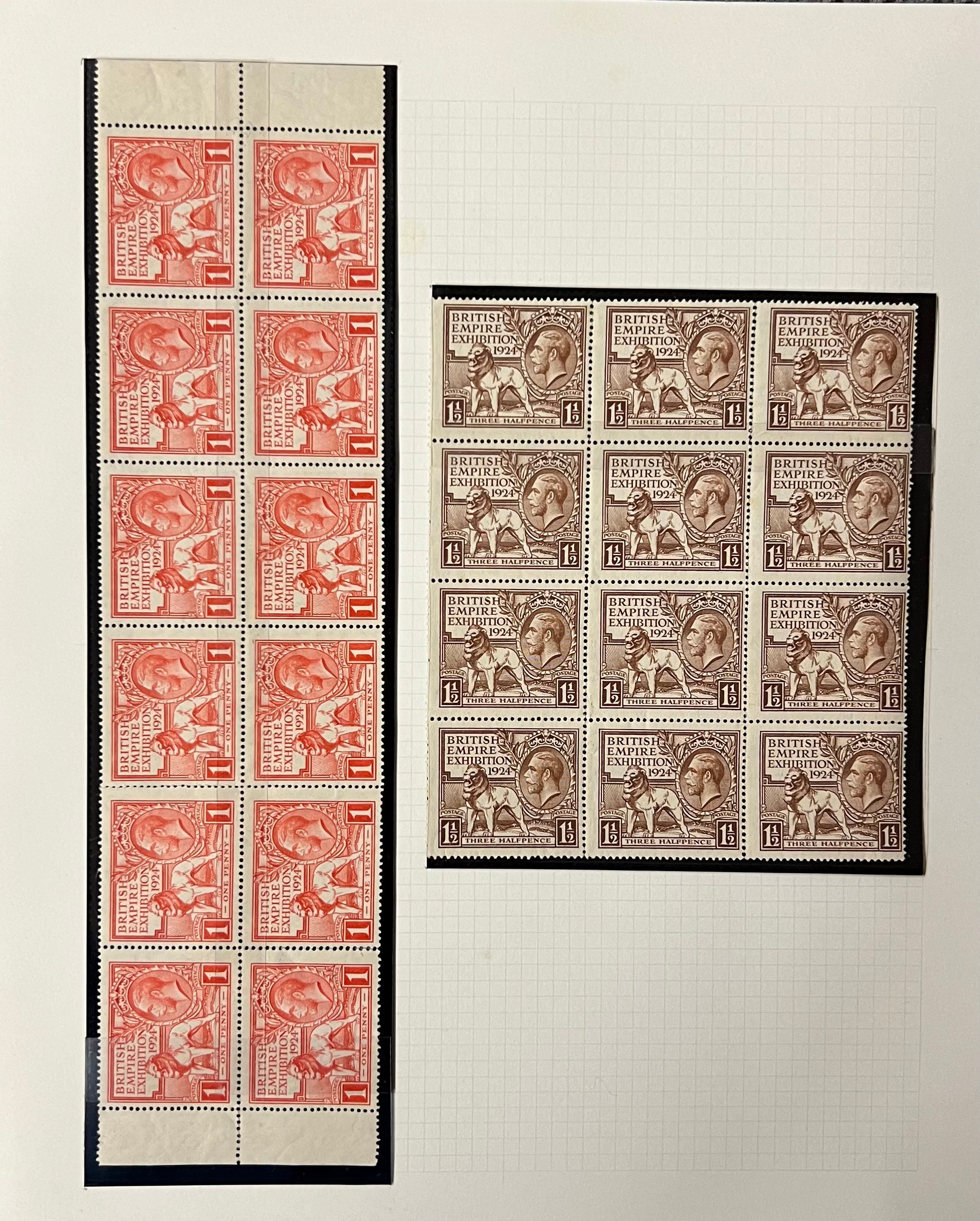 Great Britain, 1924 Wembley set in UM blocks of 12, plus 1½d...
