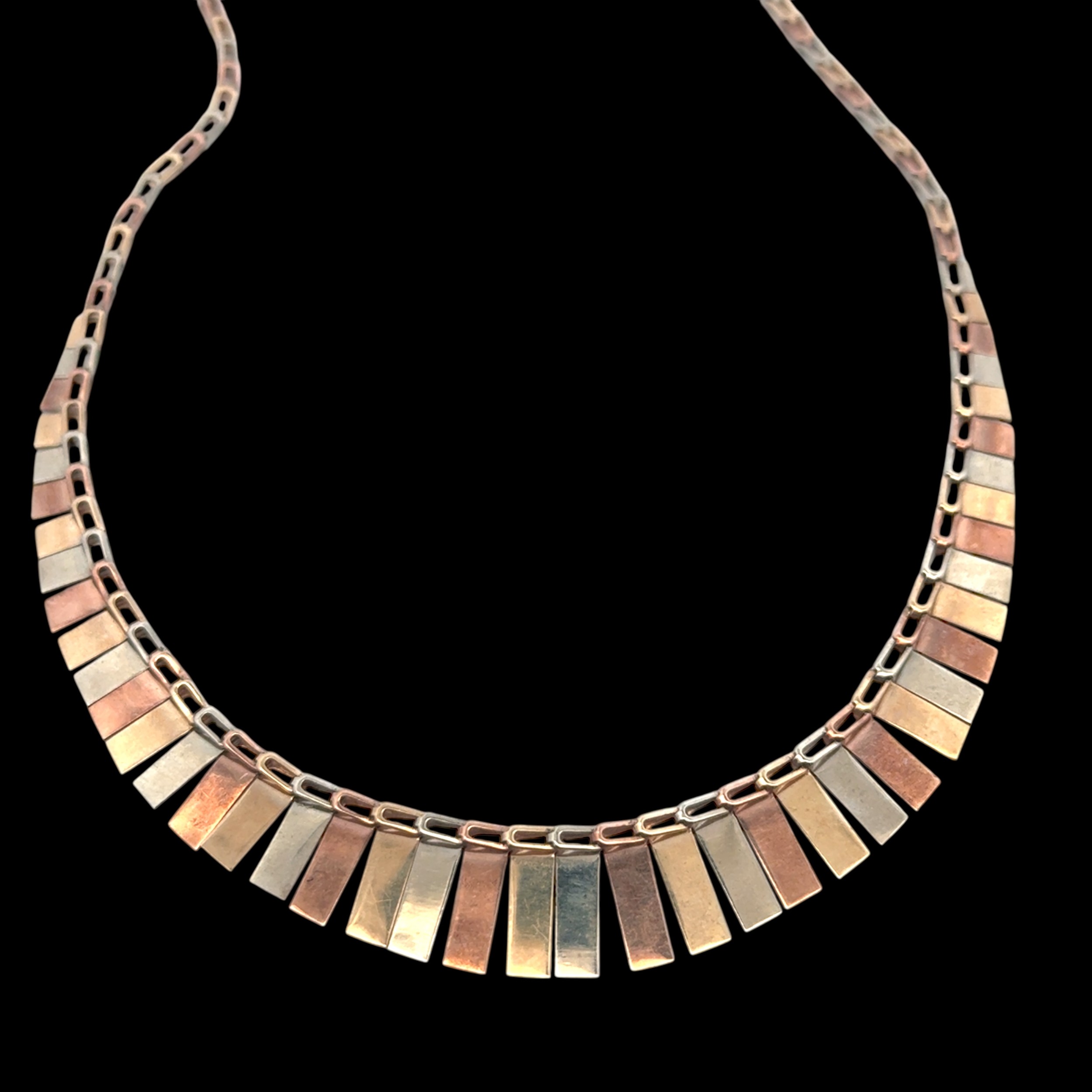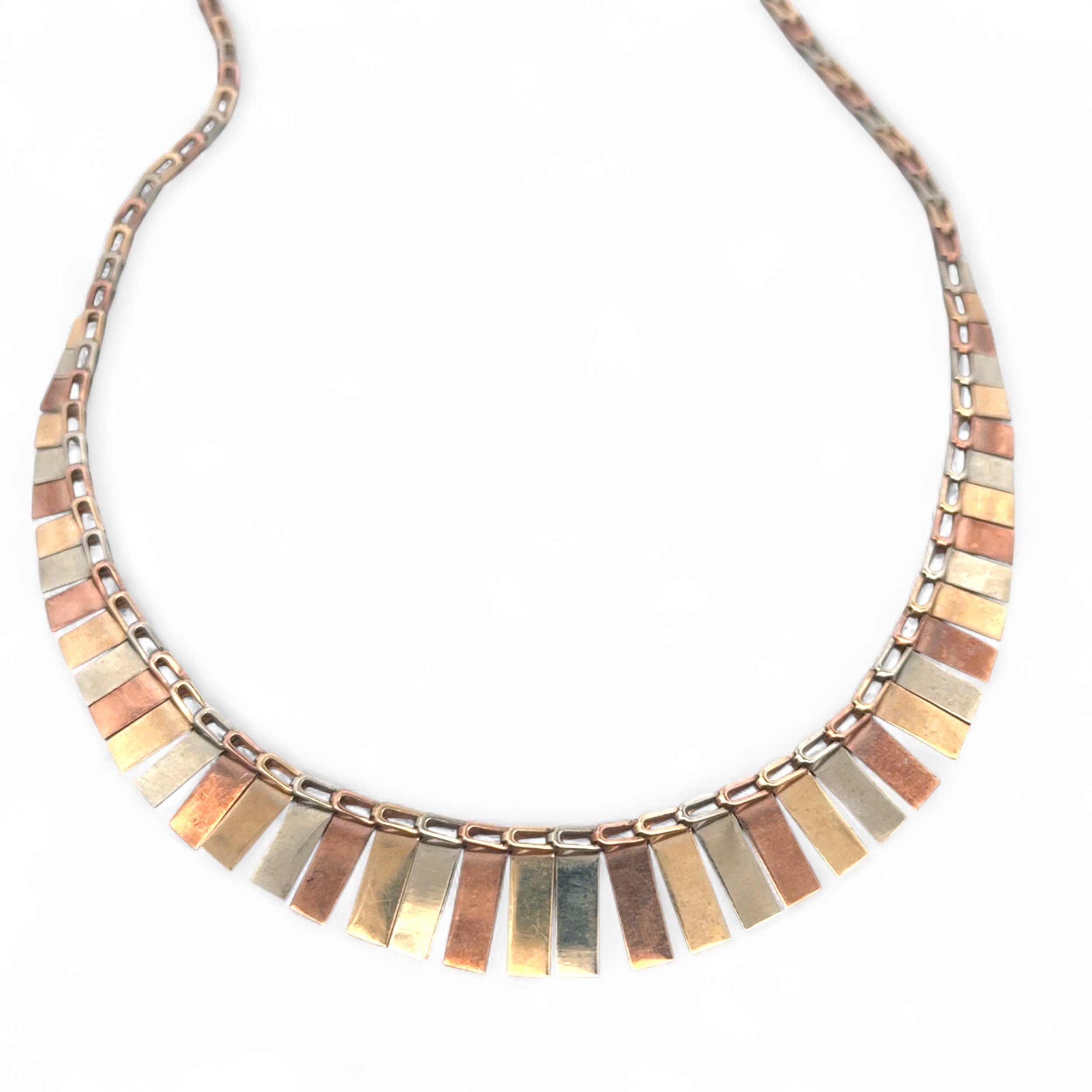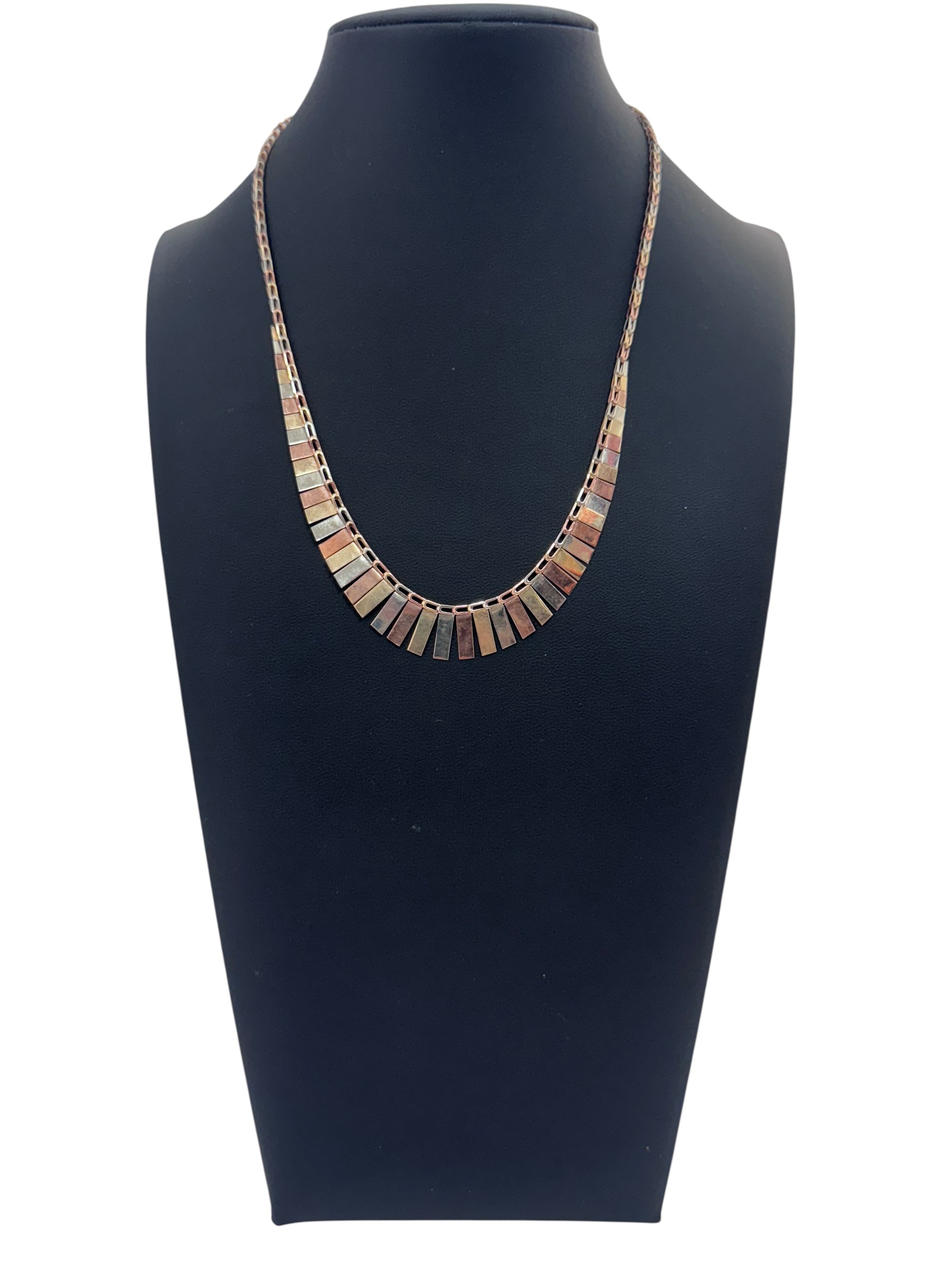 A 16" graduated tri coloured 9ct gold textured necklace.