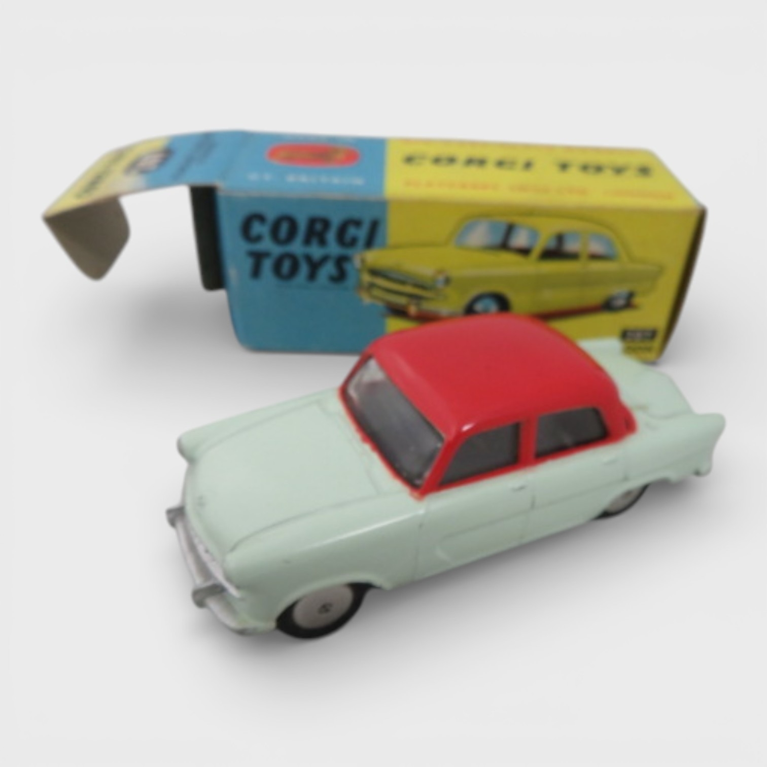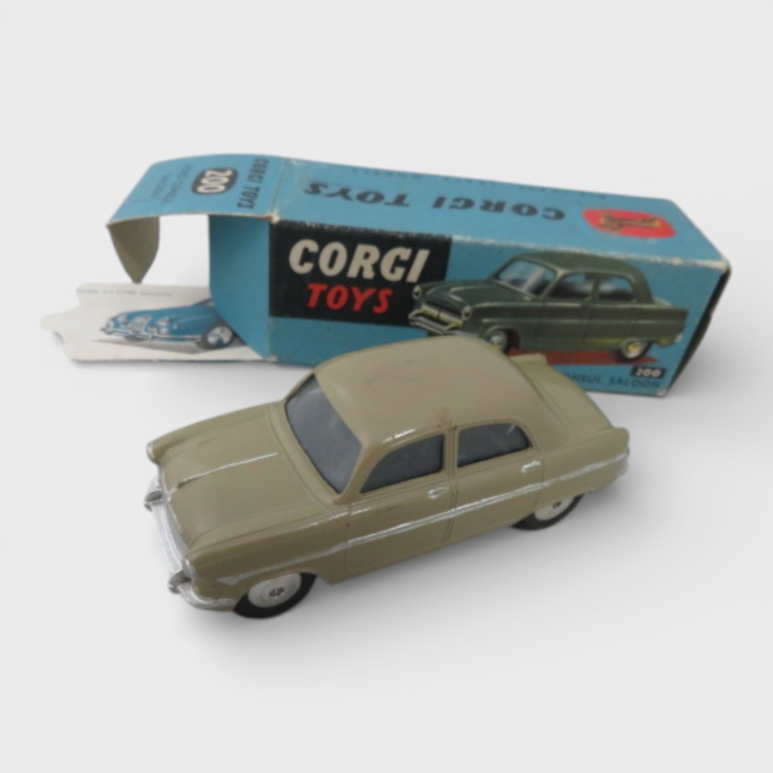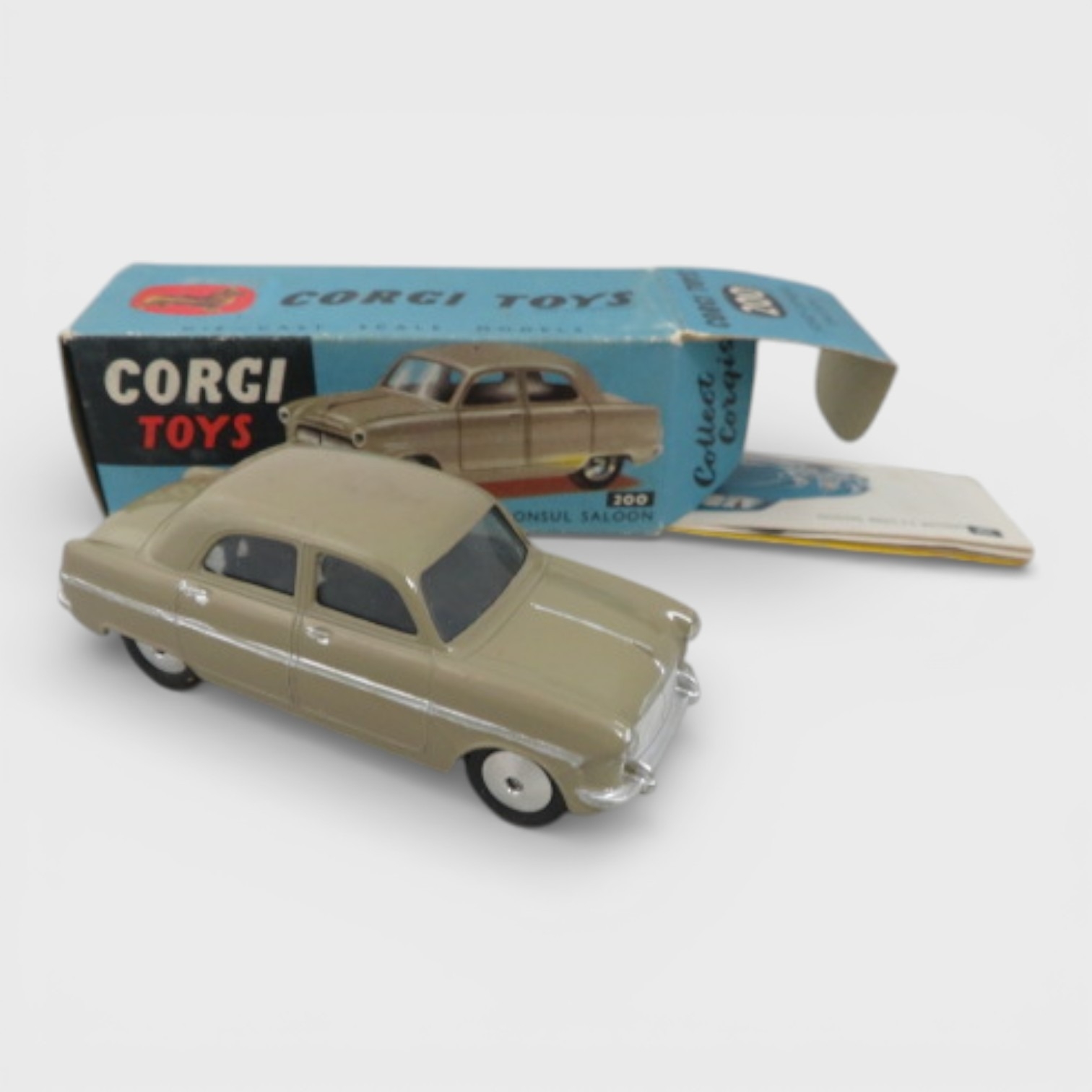 Corgi 1950s onwards collection, with Jaguar 2.4 Litre white No. 204, Ford Consul Classic cream/pink No. 234, Standard Vanguard III No. 207, Ford Consul saloon No. 200 and Hillman Husky No. 206, generally excellent to good plus in good plus boxes. Contents unchecked for completeness or correctness and viewing recommended. Qty 5