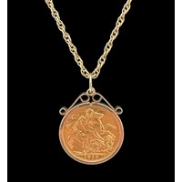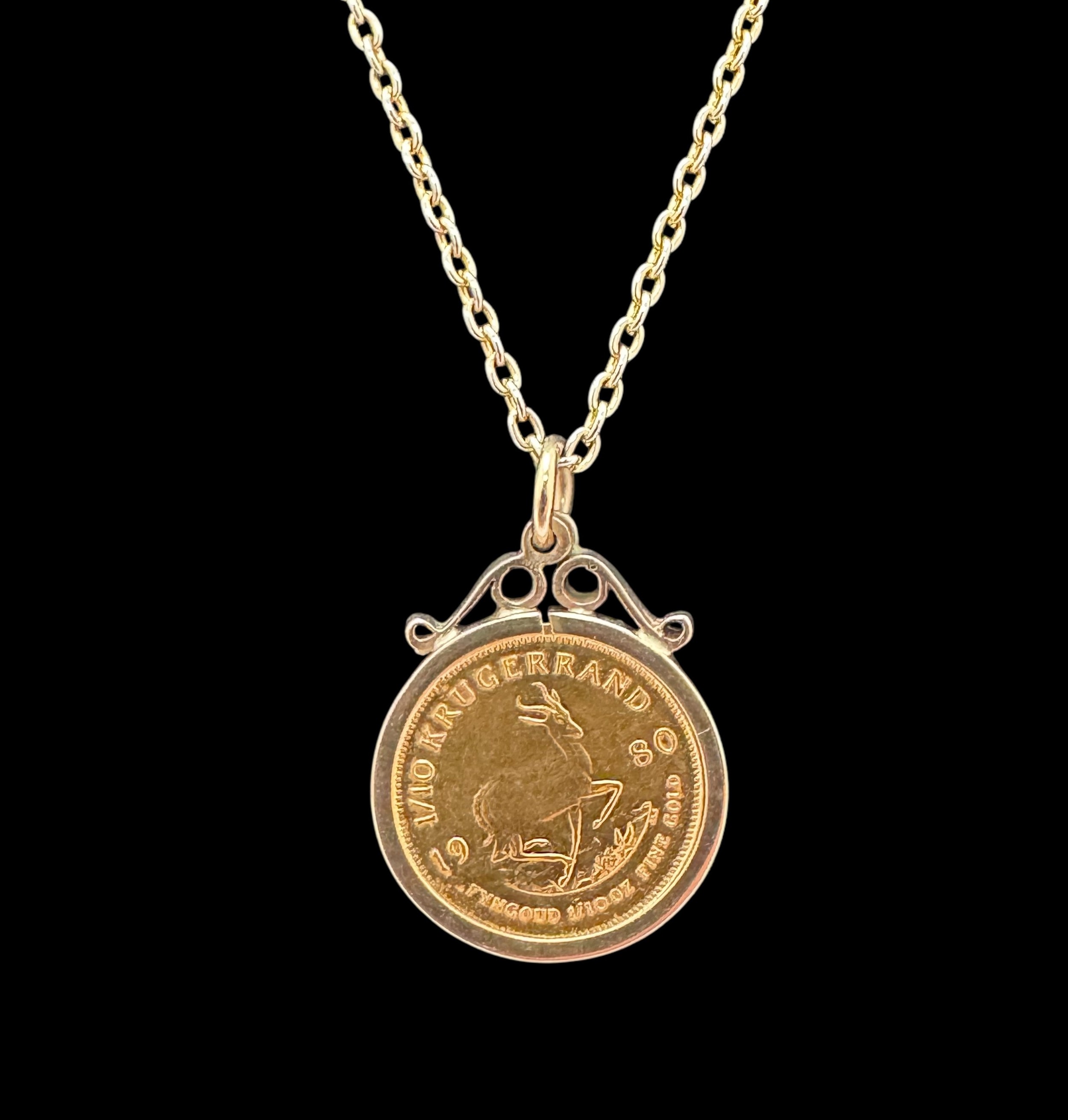 1/10 Krugerrand pendant in a 9ct gold mount on a gold plate...