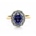 A 14ct yellow gold and oval blue and white CZ cluster ring, ...