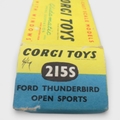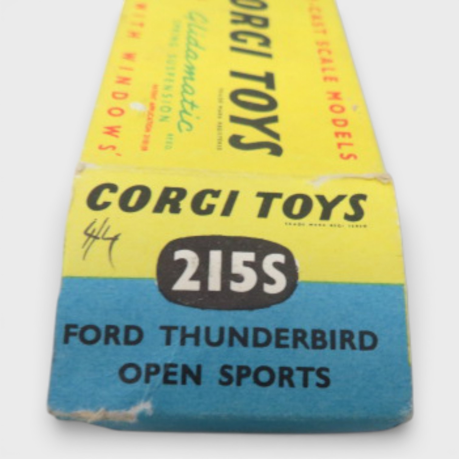 Corgi No. 215S Ford Thunderbird Convertible, red with orange-yellow interior, spun hubs, excellent to good plus (wear to driver figure) in good plus to good box. Contents unchecked for completeness or correctness and viewing recommended.