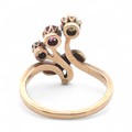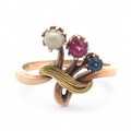 An unusual ruby, sapphire and white stone ring, stamped 585....
