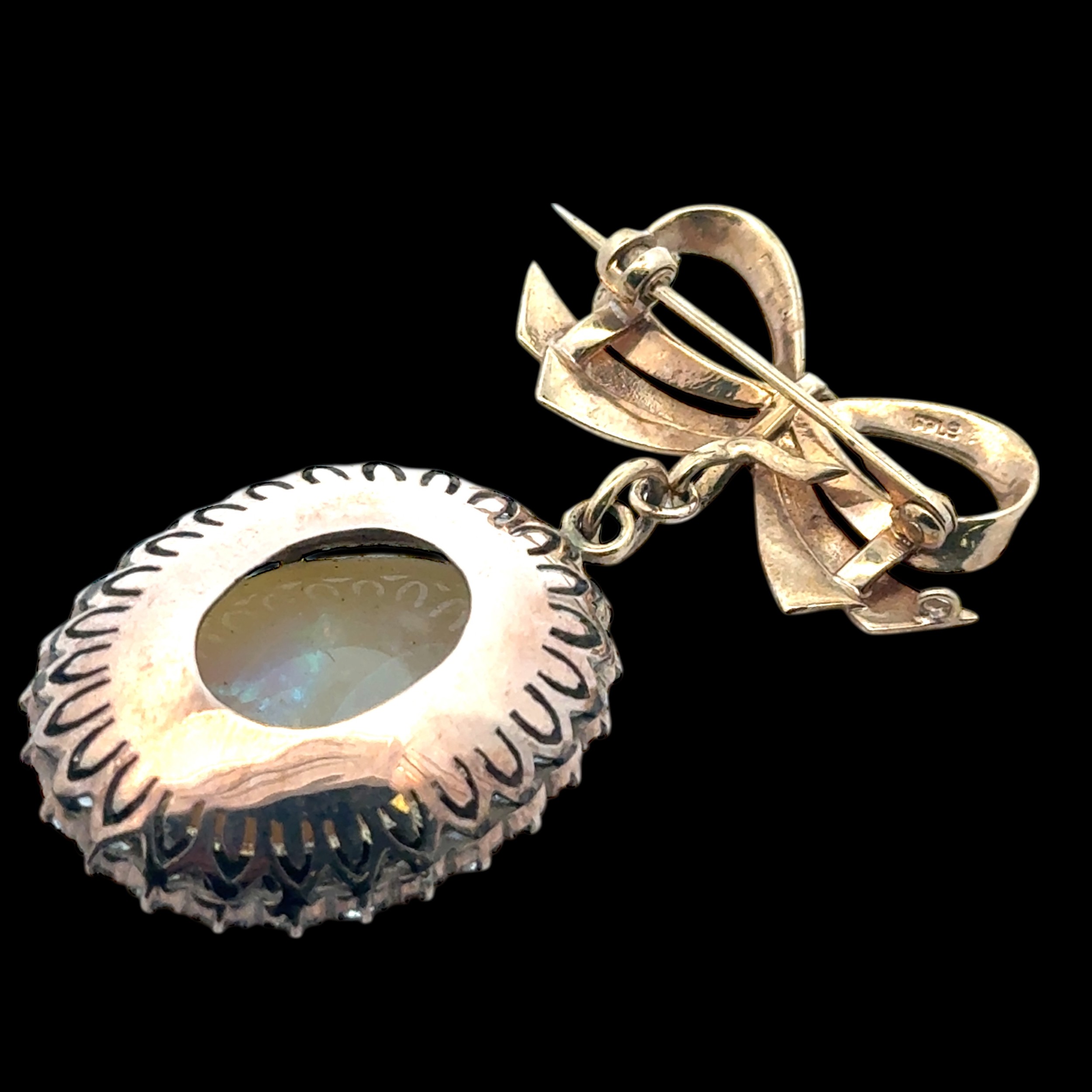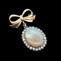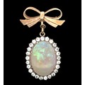 An opal and white stone bow brooch. Opal approx 25mm x 18mm....