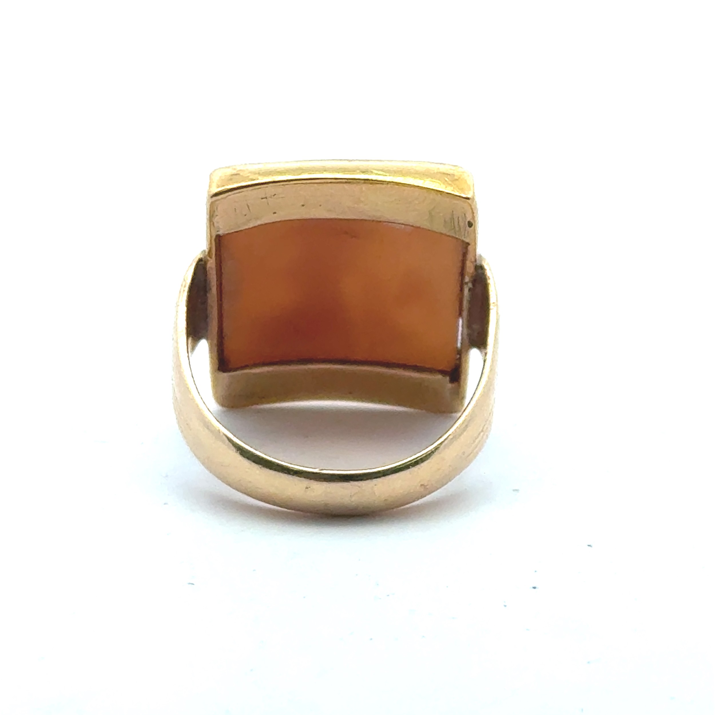 Cameo ring - an unmarked yellow metal set with a rectangular...