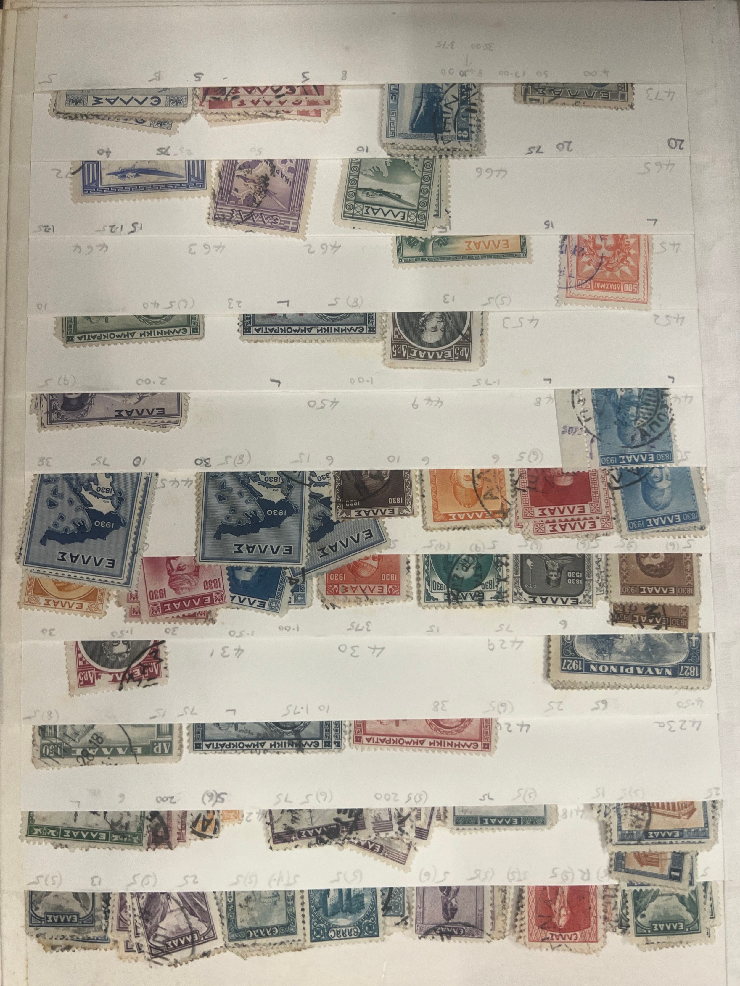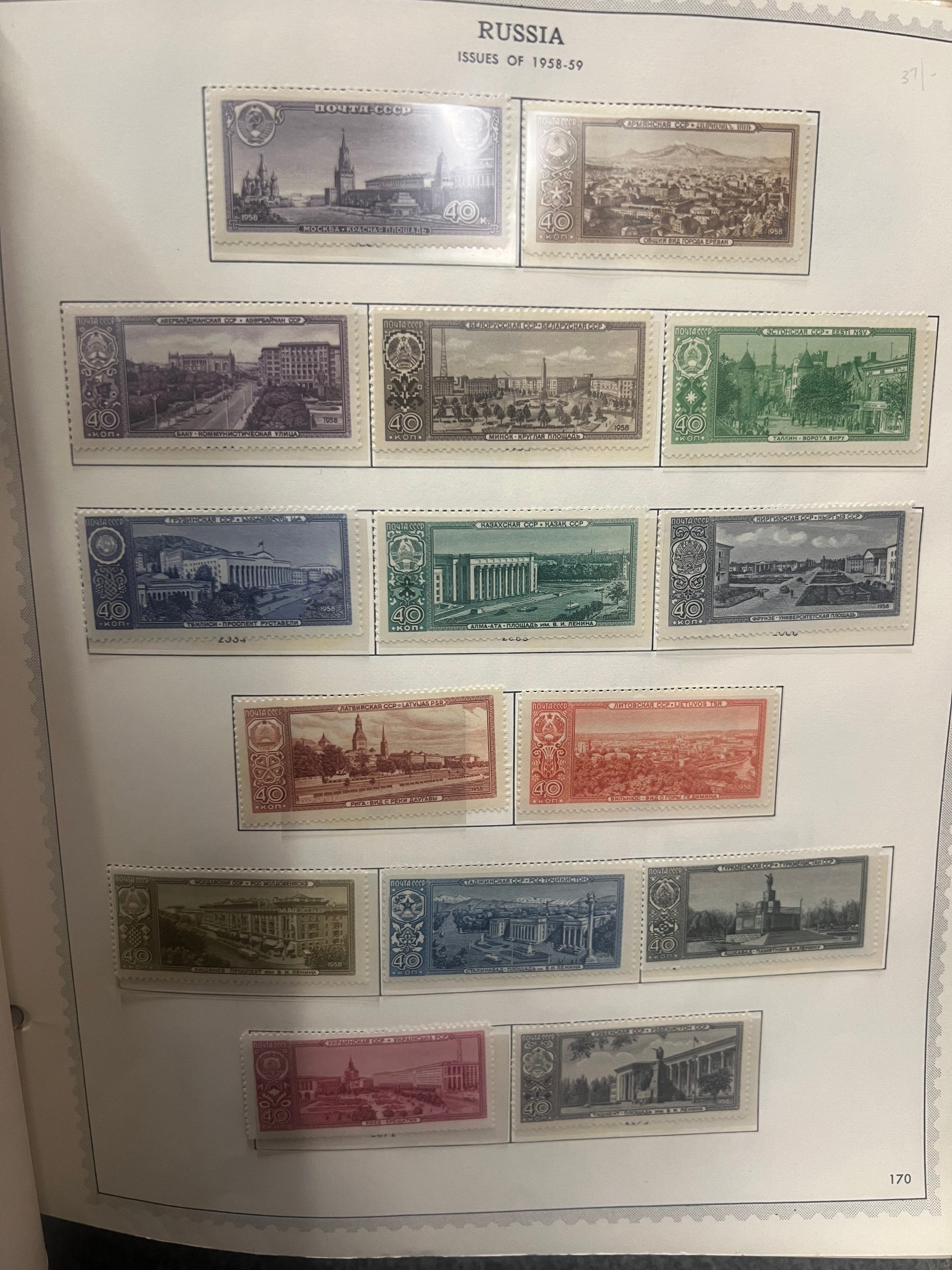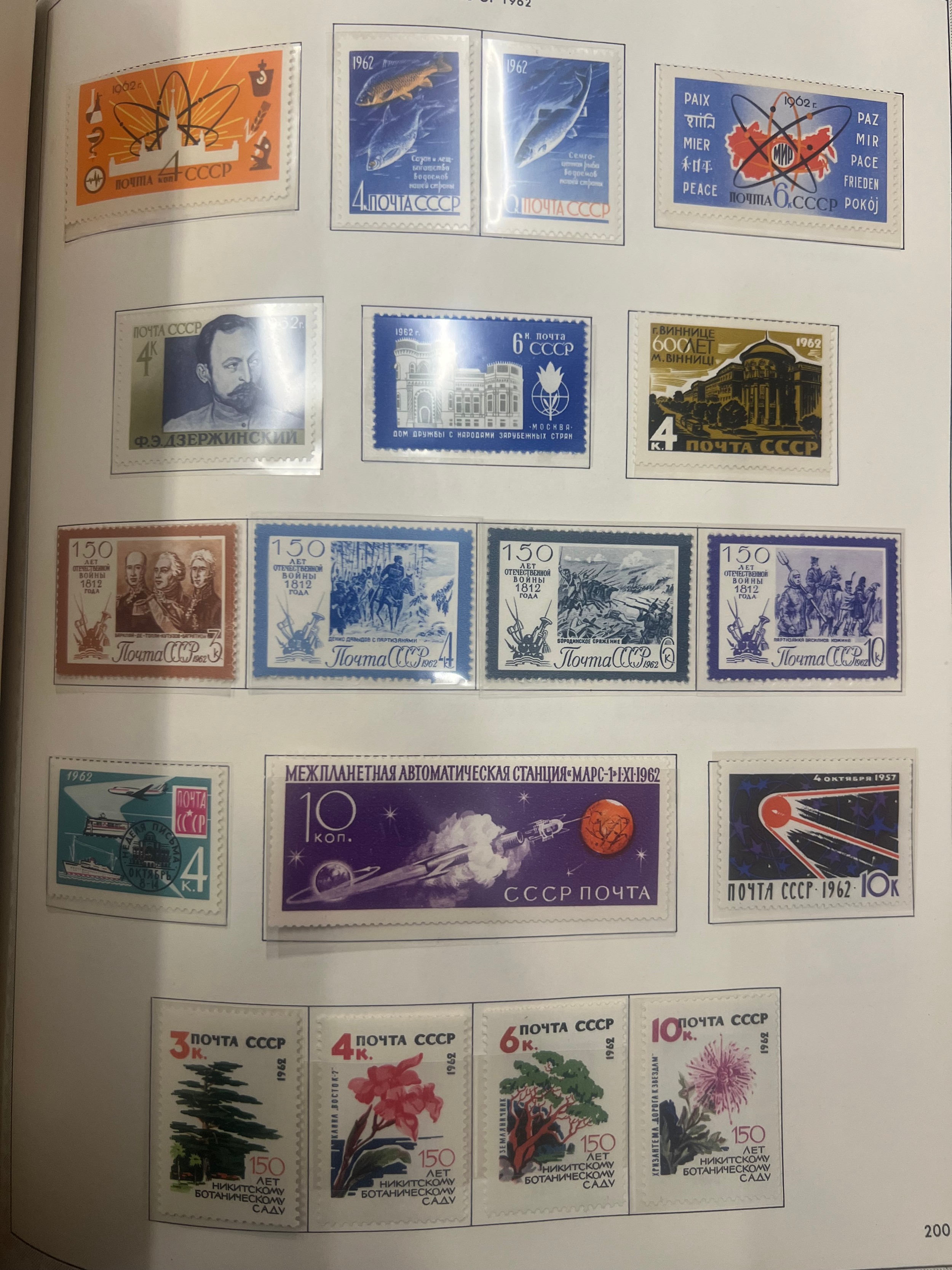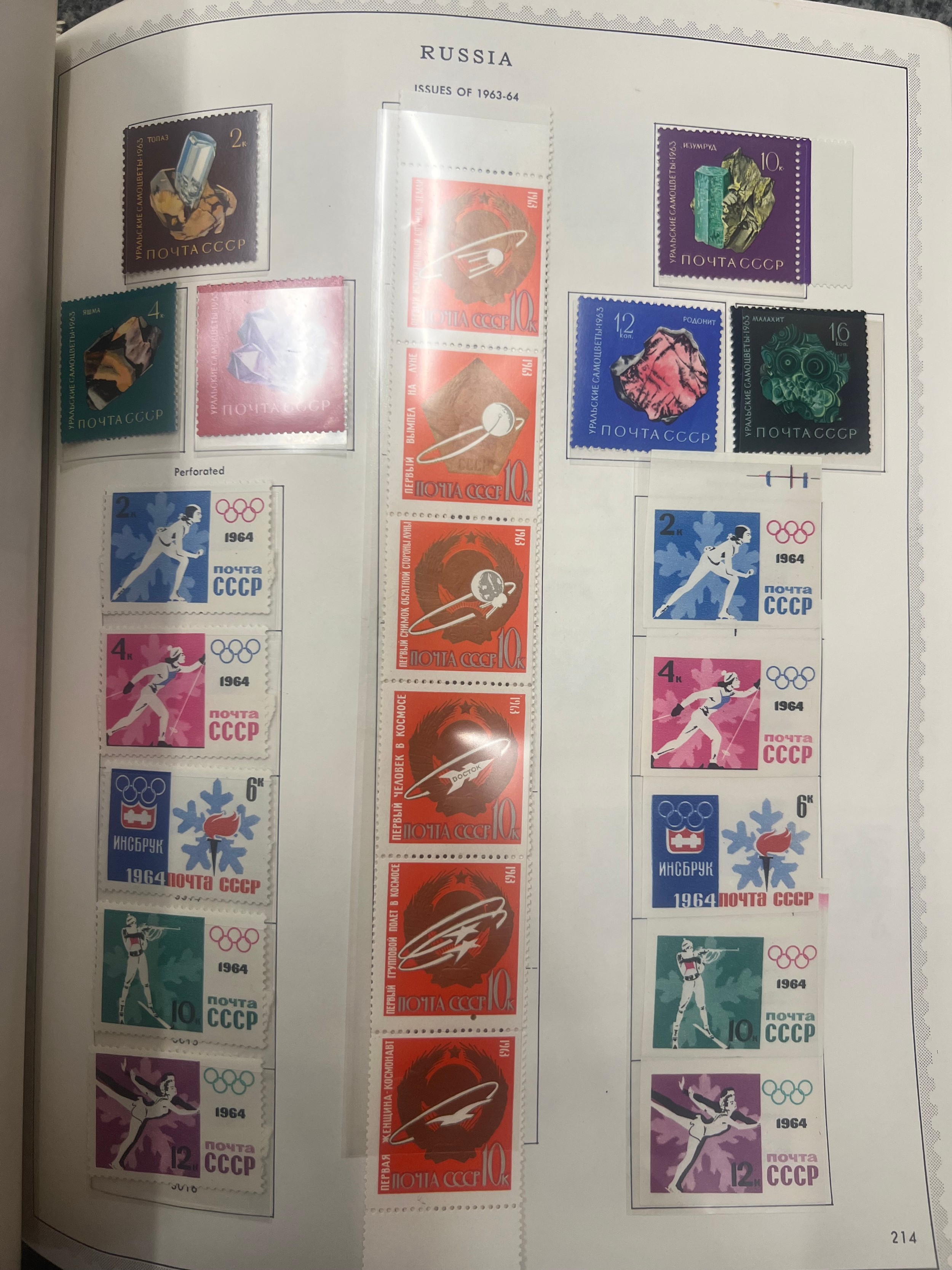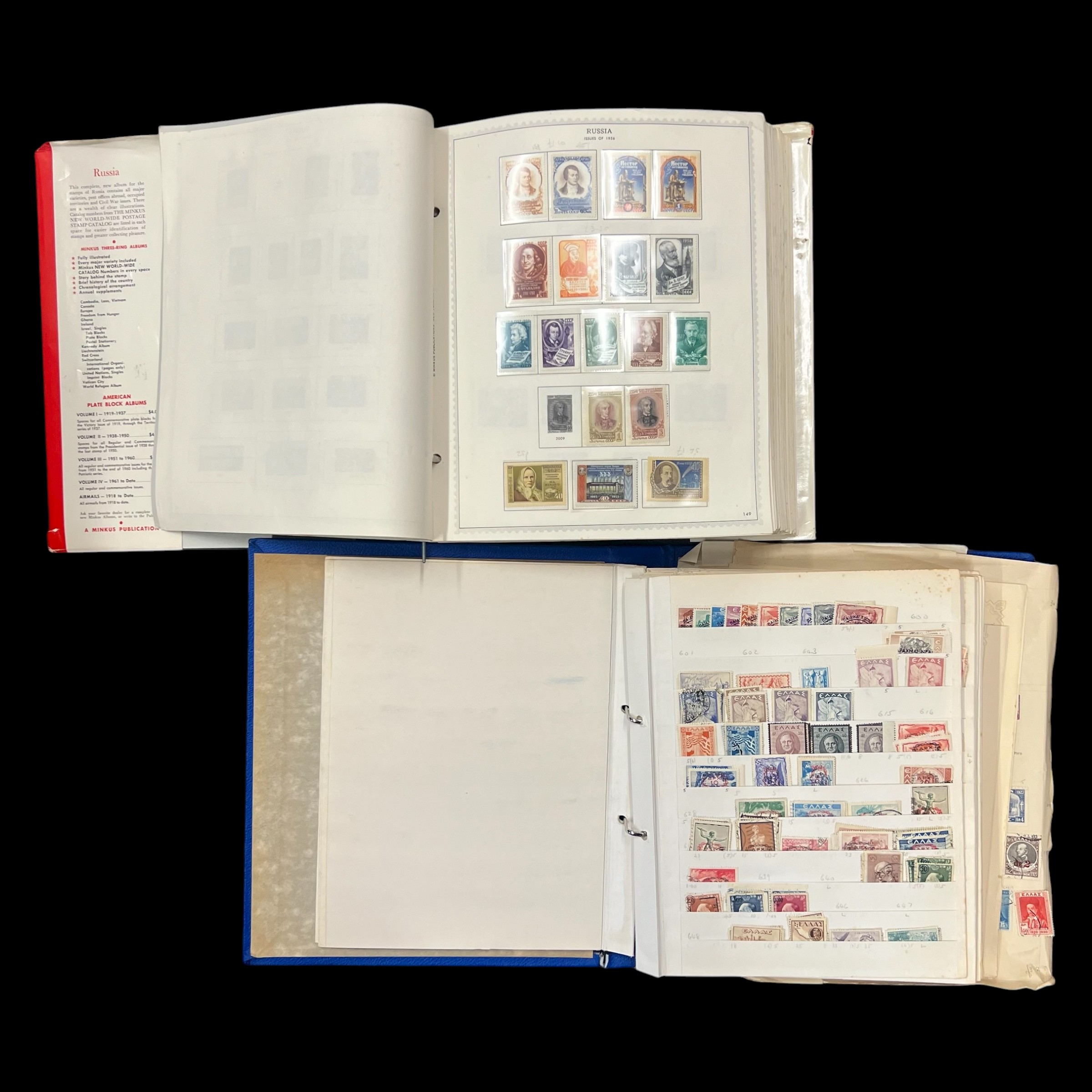 Russia, collection of UM or M Russian stampsin well filled (not complete) printed Minkus album with issues from 1956-1969, commems, M’S, some 1960’s imperfs etc. Plus, 2nd volume of stockleaves full with Greece 1930’s-70’s dupl used.